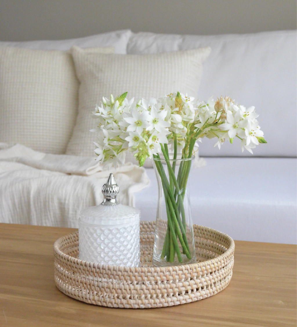 Una combinación perfecta de funcionalidad y diseño, esta bandeja de fibras naturales aporta calidez a cualquier ambiente. Usala para decorar la mesa ratona, como centro de mesa del comedor, para organizar tus objetos sueltos y hasta para servir.